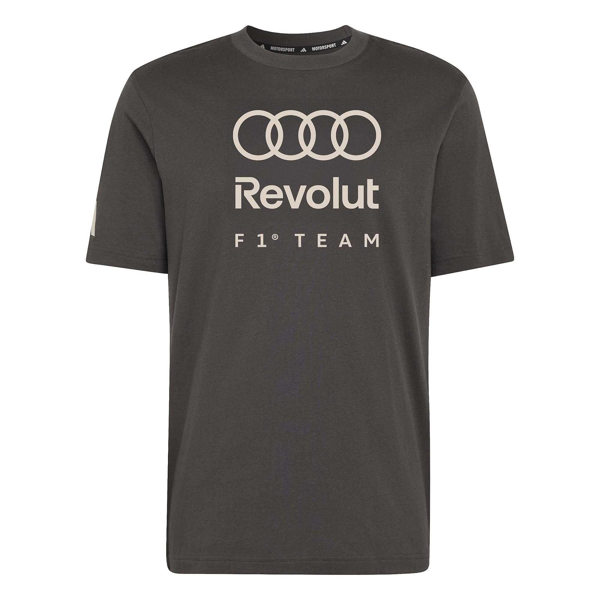 T-shirt gris à col rond avec coupe slim. Grand logo Audi F1® Team, logo adidas Performance sur la manche droite et bande adidas Motorsport au col. En 100 % coton. Lavable à 40°C, adapté au sèche-linge.