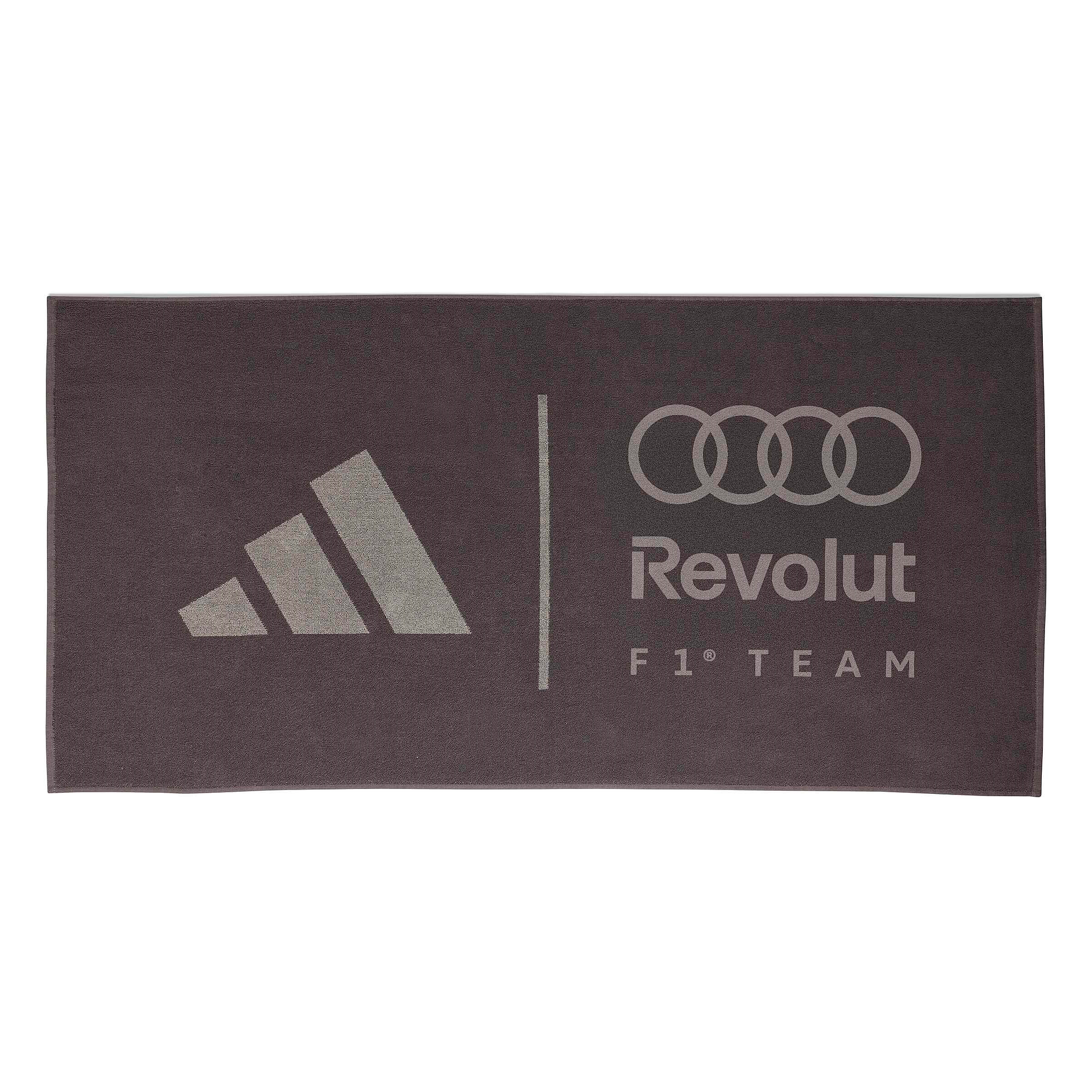 Grijze tweekleurige handdoek van 100% katoen met geweven Audi F1® Team- en adidas Performance-logo’s. Afmetingen: 70 x 140 cm. Wasbaar op 40°C, geschikt voor de droger.