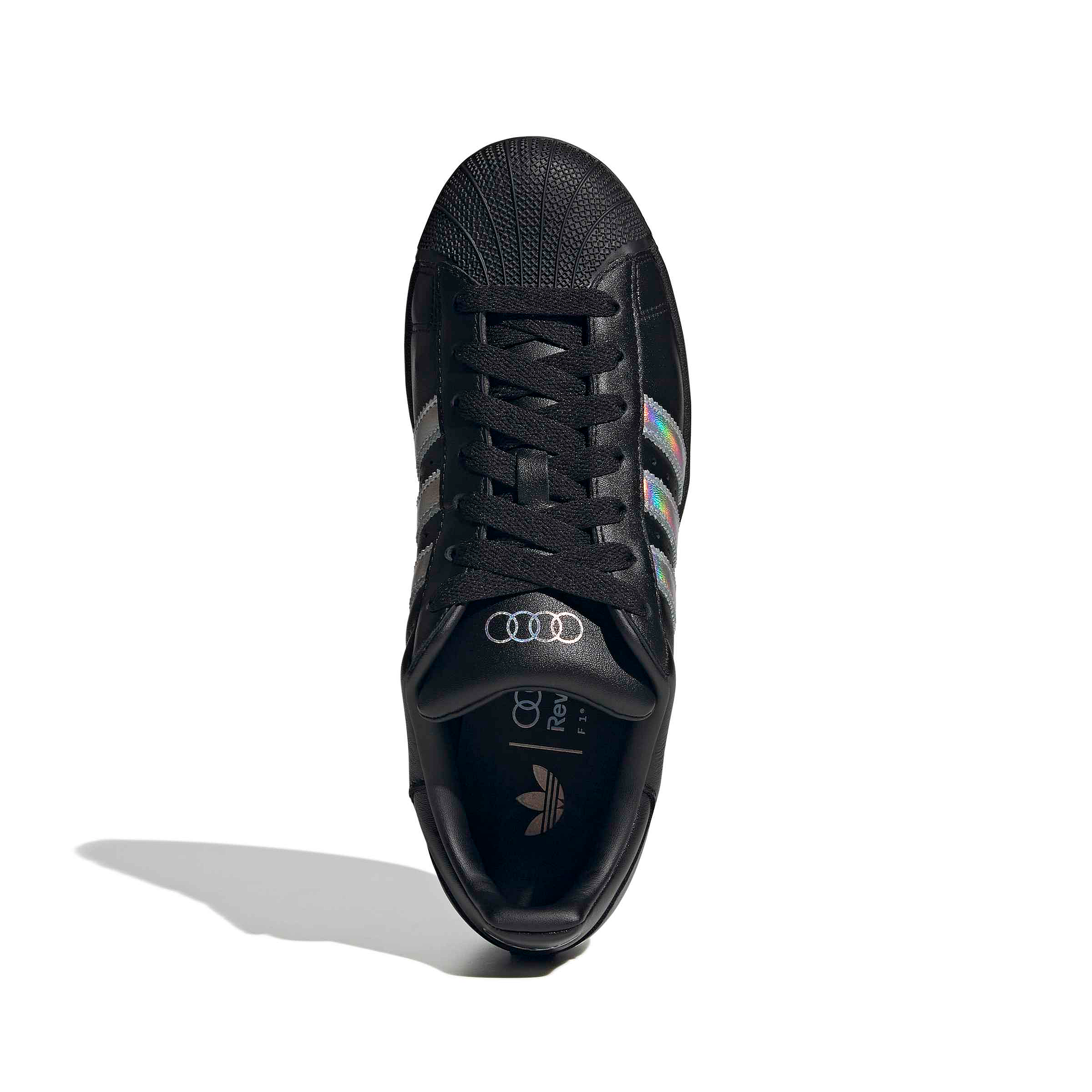 Zwarte sneakers met regular fit, vetersluiting en gevoerde tong. Met Audi-ringen op de tong en hiel. Bovenwerk van leer, voering van textiel en rubberen zool.