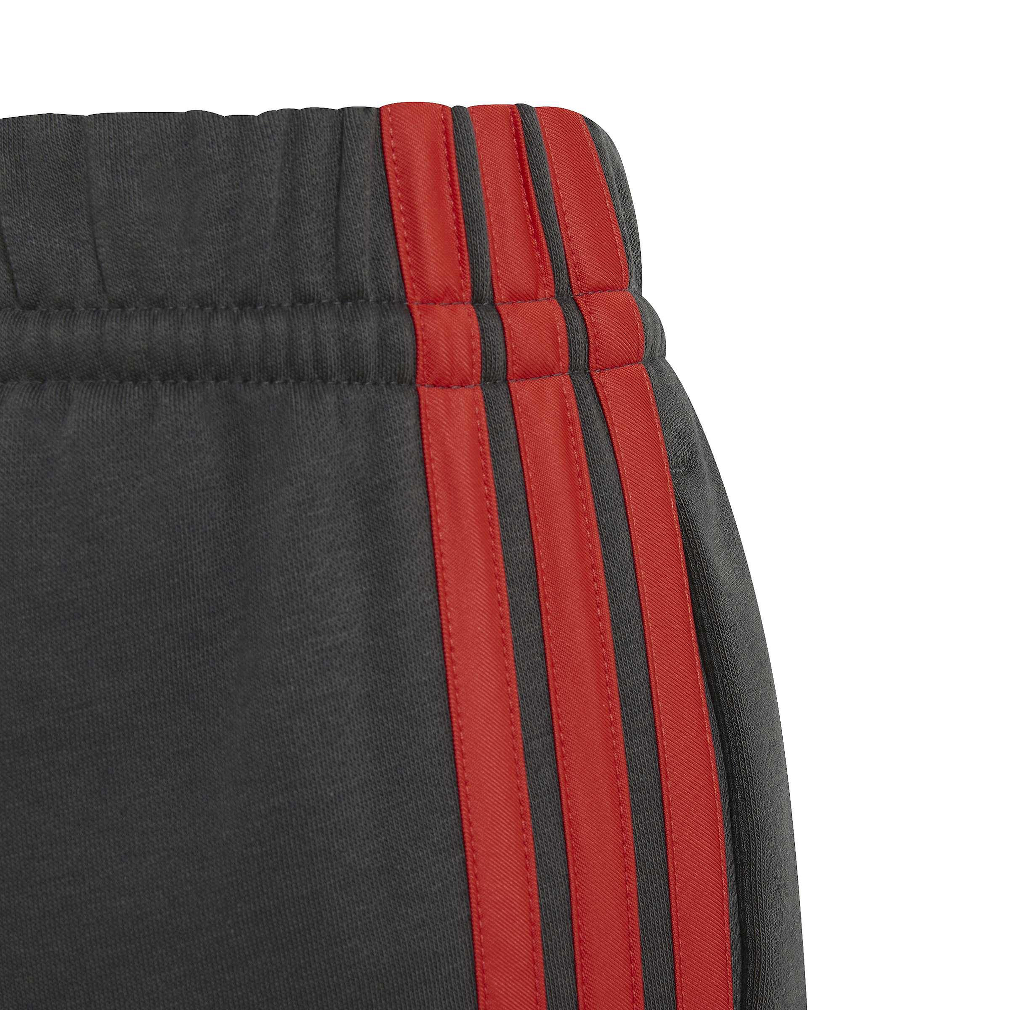 Zwart-grijze lange joggingbroek met regular fit, elastische tailleband met trekkoord en zijzakken. Met Audi F1® Team-logo en adidas Performance-logo op de voorkant en 3-Stripes langs beide zijden. Gemaakt van 55% katoen, 36% gerecycled polyester en 9% viscose. Machinewas 40°C, geschikt voor droger.