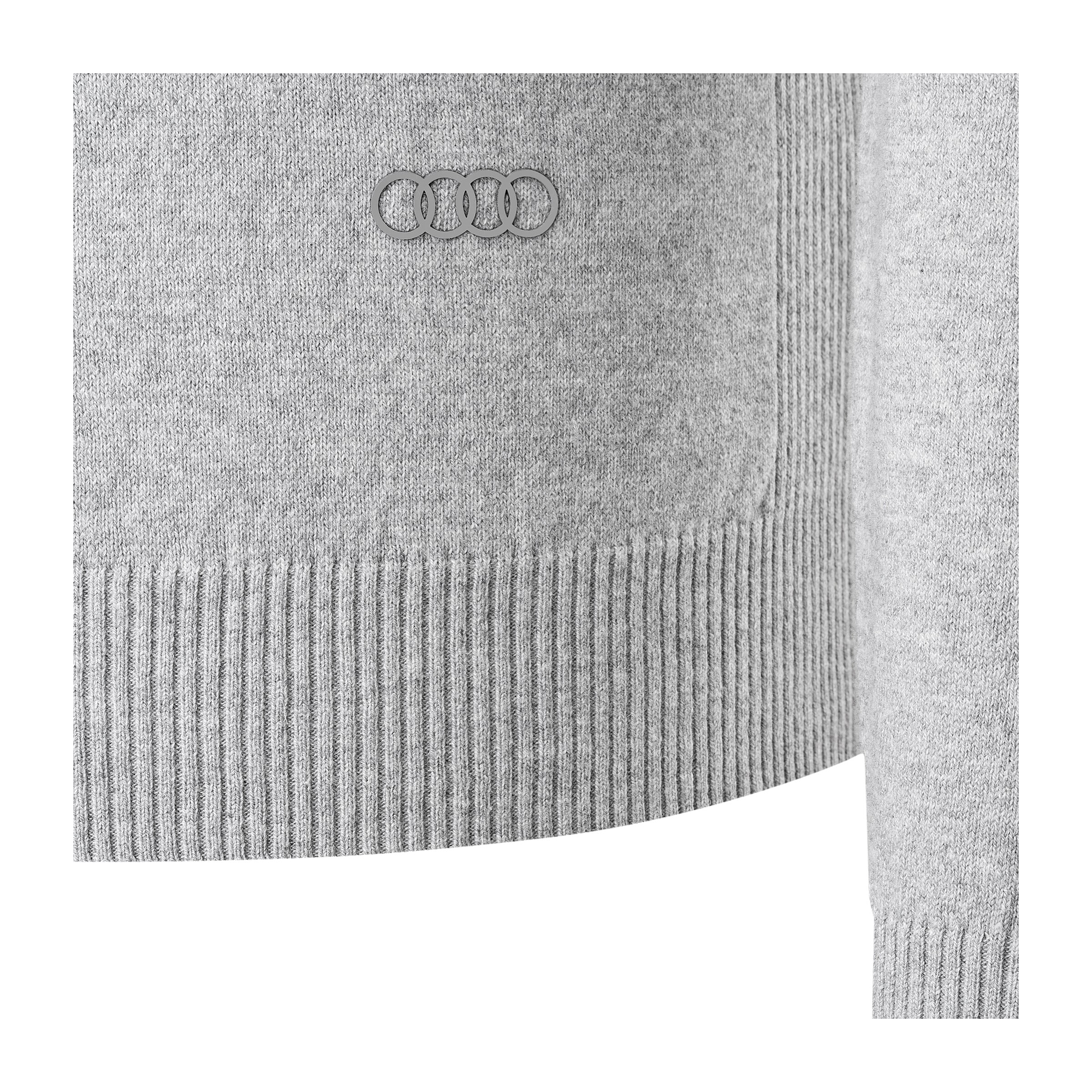 Details: - Gebreide sweater met ronde hals - Ribtricot in het schouderpand en aan de zijkanten voor een mannelijk silhouet en dito pasvorm - Bies met kleuraccenten in Thyme-groen op het achterschouderstuk Branding: - Audi-ringen op het neklabel - Audi-ringen in 3D-print boven de zoom Materiaal: 80% katoen, 20% scheerwol Wasvoorschriften: - Handwas - Niet geschikt voor de droger Kleur: Lichtgrijs Maten: S–XXL